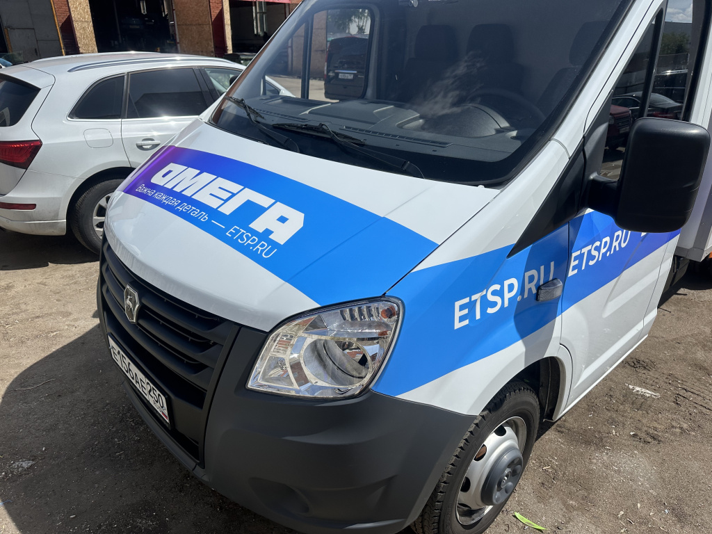 Выполнили частичную оклейку кузова и будки автомобиля «Газель» (ПТФ) в фирменном стиле компании «ОМЕГА». Время работ — 5 часов. Автомобиль стал эффективным мобильным носителем бренда, подчёркивающим специализацию компании на поставках запчастей.
