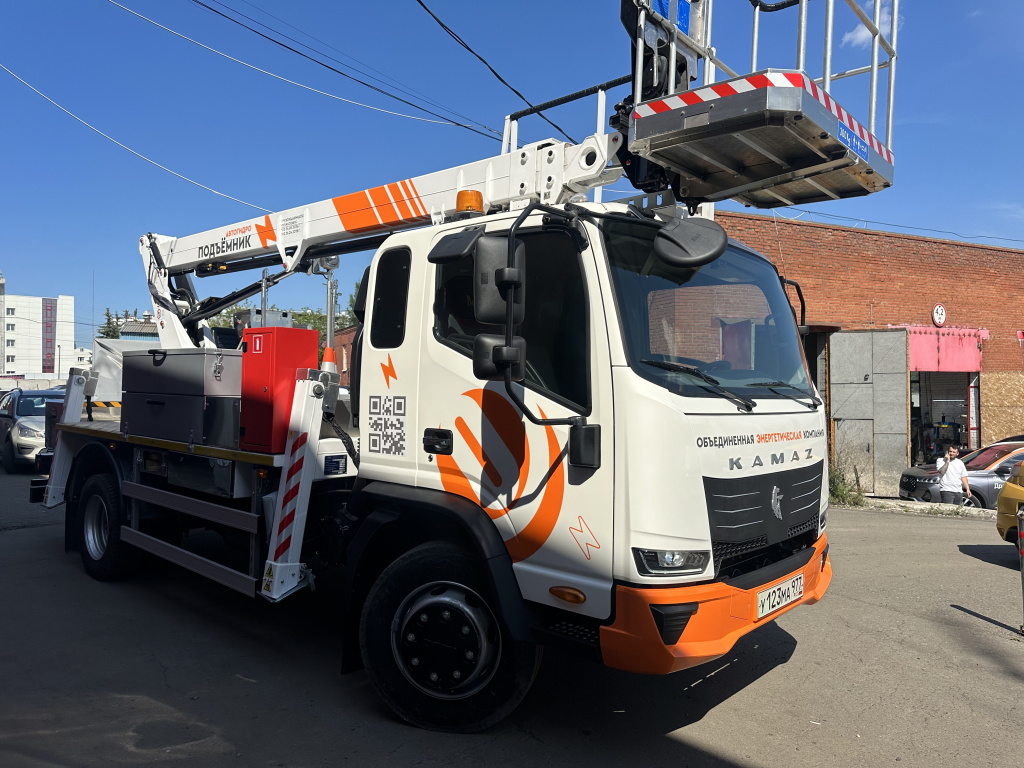 После брендирования грузовик КАМАЗ с автовышкой стал не только функциональным средством работы, но и мобильным рекламным носителем:
